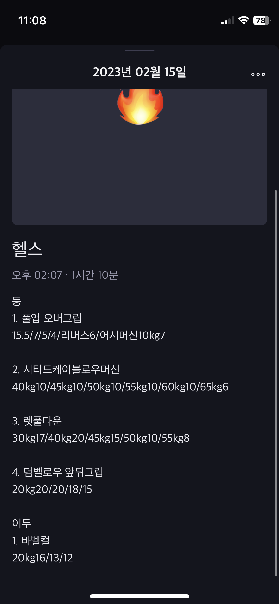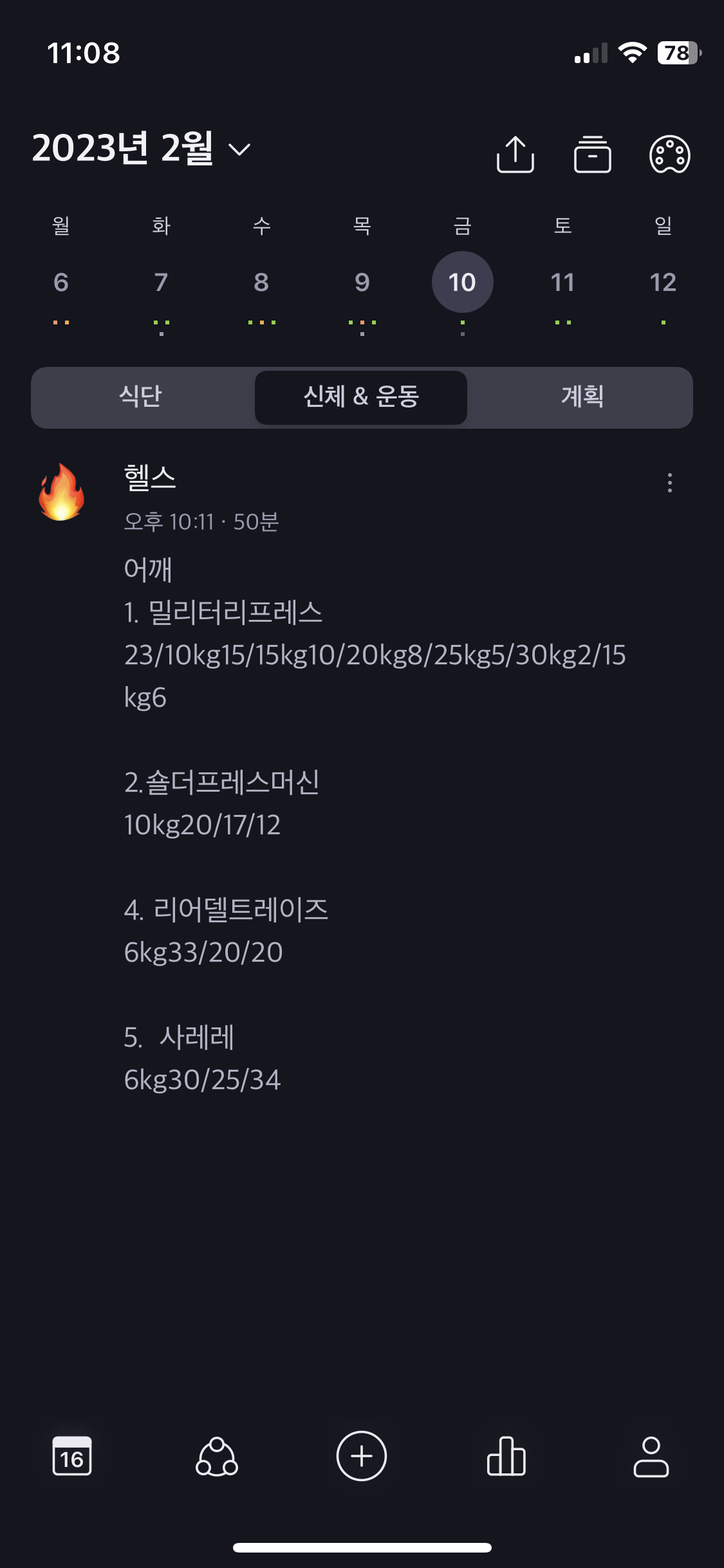 이외에도 힘든일도 있었고,, 해서 운동을 일주일에 3회정도만 한 것 같다.