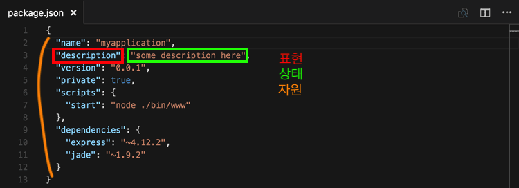 - 자원(resources)의 상태(data)를 표현(representation, 고유한 HTTP URI 부여)으로 구분하여 주고받는 것.