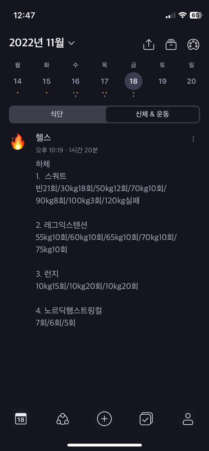오늘은 스쿼트 140kg 도전하다가 실패했다.